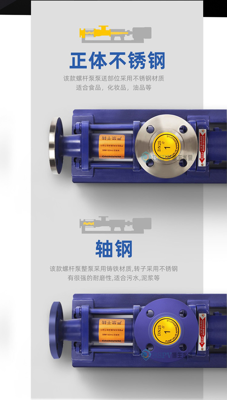 博生牌G型單螺桿泵制造標準分為食品級、化工級、日用品型、特種型等四大系列,產品的核心部件和密封裝置,根據介質的不同特性,采用不同的材質和不同的密封形式,以滿足各種物料的需要。