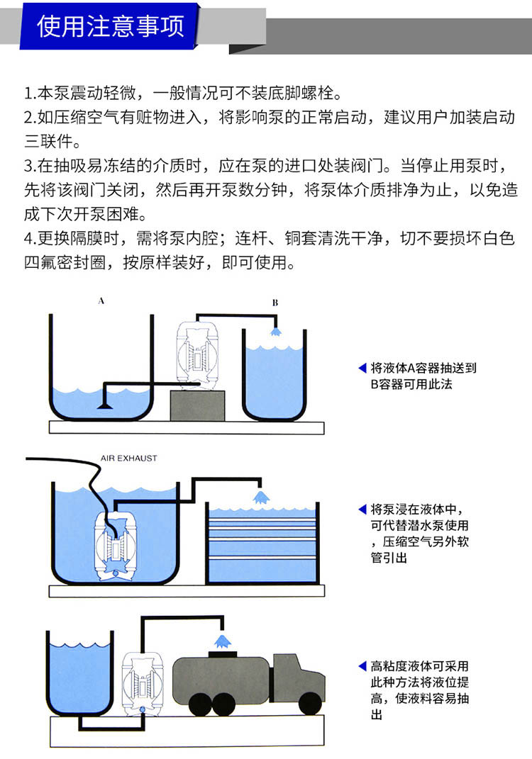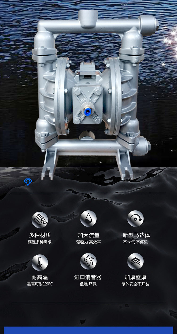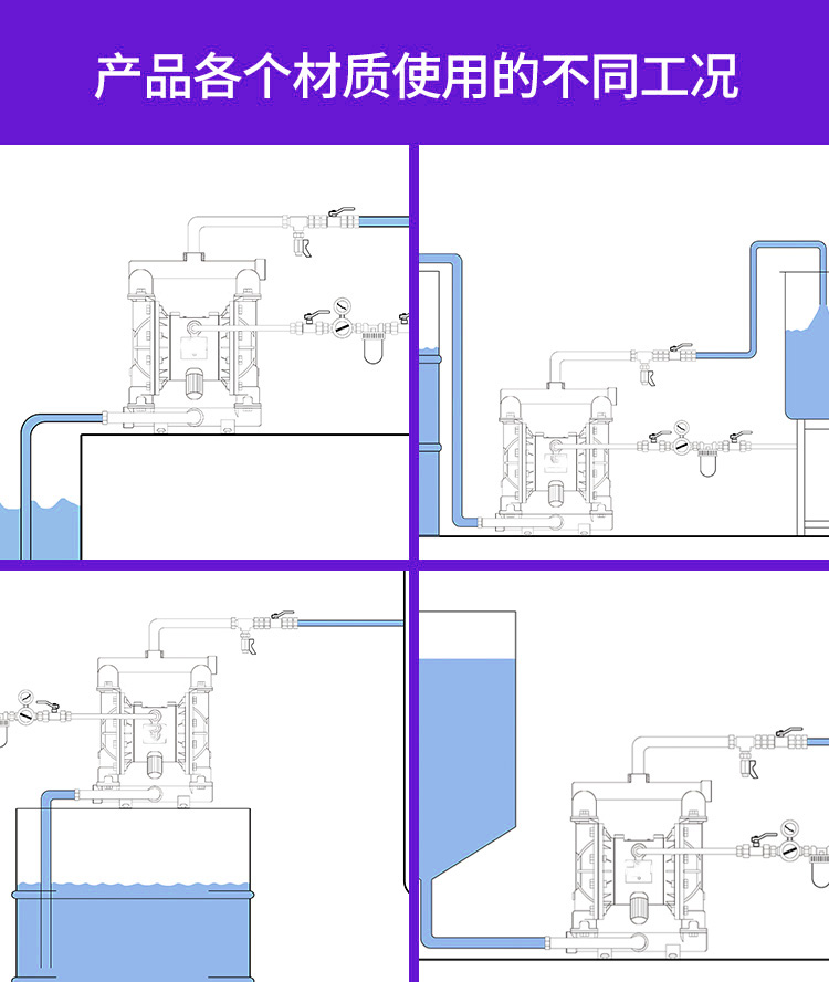 大揚程:0~60(m)隔膜泵材質:不銹鋼,鑄鐵,鋁合金,工程塑料PP。